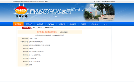 下面以我司上海浦下的防爆冷柜為例,在河南頒發(fā)的我國(guó)防爆合格證查詢(xún)網(wǎng)址檢驗(yàn)防爆合格證真假。具體方法如下:
